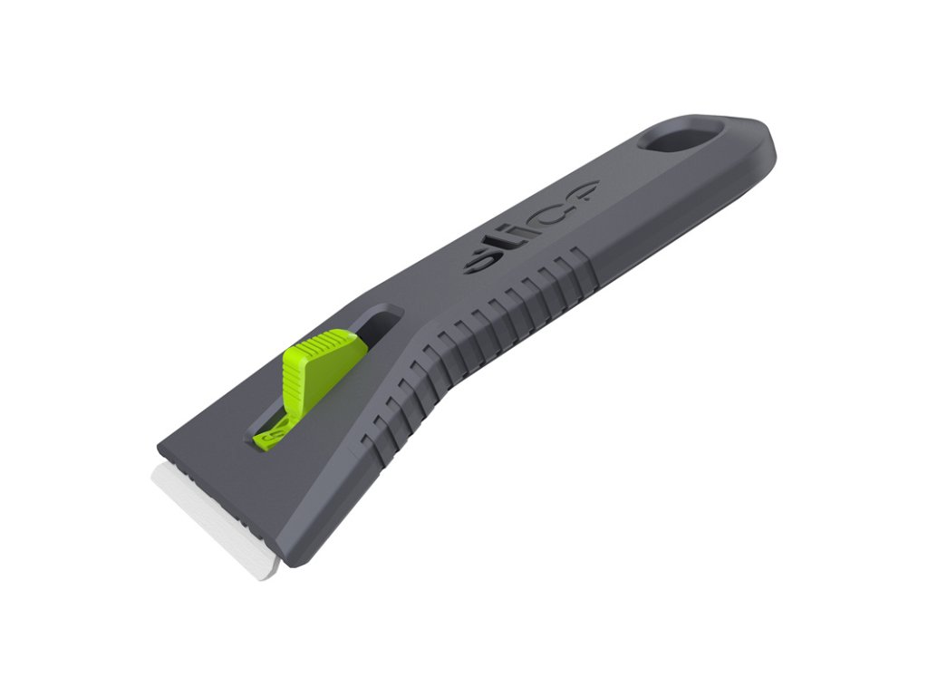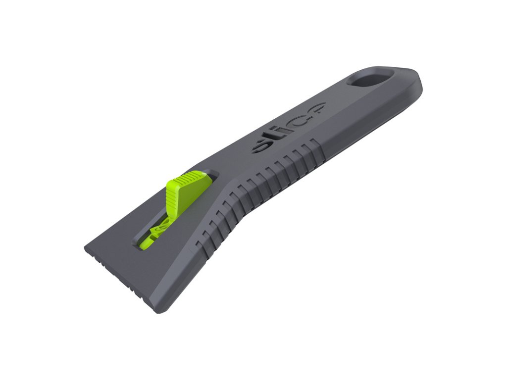 Samozatahovací univerzální špachtle Slice je dalším finger-friendly přírůstkem do rodiny bezpečnostních nástrojů. Skládá se ze zaoblené bezpečnostní čepele a pevné, vyztužené, ergonomické, nylonové rukojeti s měkkými úchyty pro vaše pohodlí. Oproti polohovatelným špachtlím hrozí u běžných samozatahovacích špachtlí riziko nadměrného zatížení ruky, neboť uživatel musí tlačit palcem na posuvník, aby čepel zůstala vysunutá. Tento problém jsme vyřešili s pomocí SureScrape: mechanismu, který snižuje zatížení ruky, takže nemusíte volit kompromis mezi bezpečností a pohodlím. Stejně jako všechna bezpečnostní keramika Slice je i čepel této špachtle chemicky netečná, nepodléhá korozi a nevyžaduje mazání.