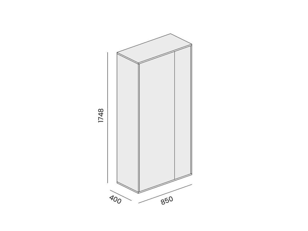 Šatní skříň BLOCK o šířce 850 mm a výšce 1748 mm vám nabídne mnoho uložných prostor a čistý elegantní design. Rektifikační kluzáky s výškou 7 mm k vyrovnání nerovnosti podlahy do 10 mm. Nábytek BLOCK je vyroben z laminované dřevotřísky o síle 18 mm.
