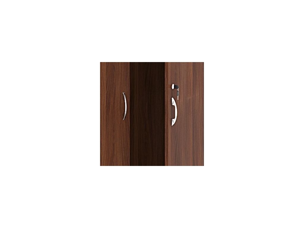 Skříň je opatřena dvěmi klasickými dveřmi, které skvěle zapadnou do prostorného interiéru. Součástí dveří je centrální zamykání se dvěmi klíči. Pohodlně tedy uzamknete všechny své cenné dokumenty. Estetickou stránku dveří doplňují kvalitní nadčasová úchytky z leštěného hliníku.