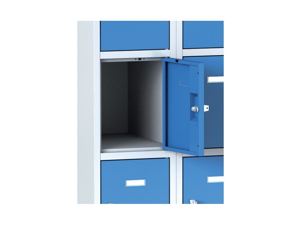 Skříňku s šířkou 300 mm tvoří 15 uzamykatelných boxů. Každý box poskytuje dostatek místa pro uložení osobních věcí, batohů či tašek. Toto úsporné a přitom bezpečné, uzamykatelné řešení je ideální všude tam, kde je potřeba šetřit místem a zároveň není nutné zavěšovat delší oděvy.