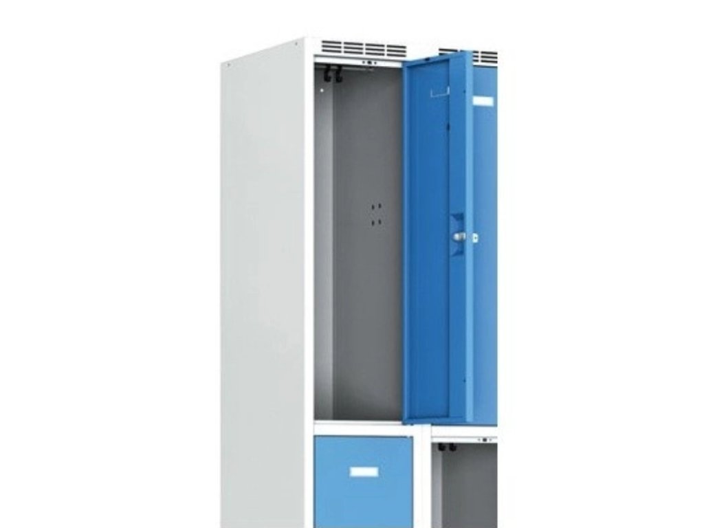 Šatní skříňka S6 s úložnými boxy, 6 boxů, 1800 x 1200 x 500 mm, cylindrický zámek, modré dveře