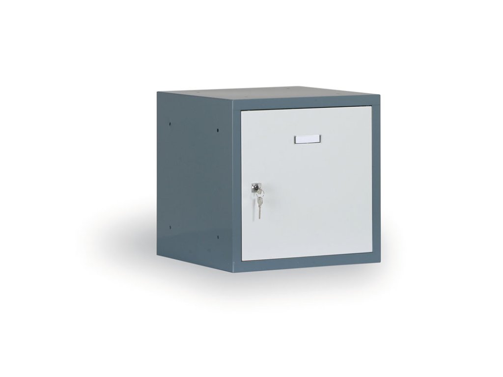 Šatní skříňka s uzamykatelným boxem 400 x 400 x 400 mm, cylindrický zámek, tmavě šedá, šedé dveře