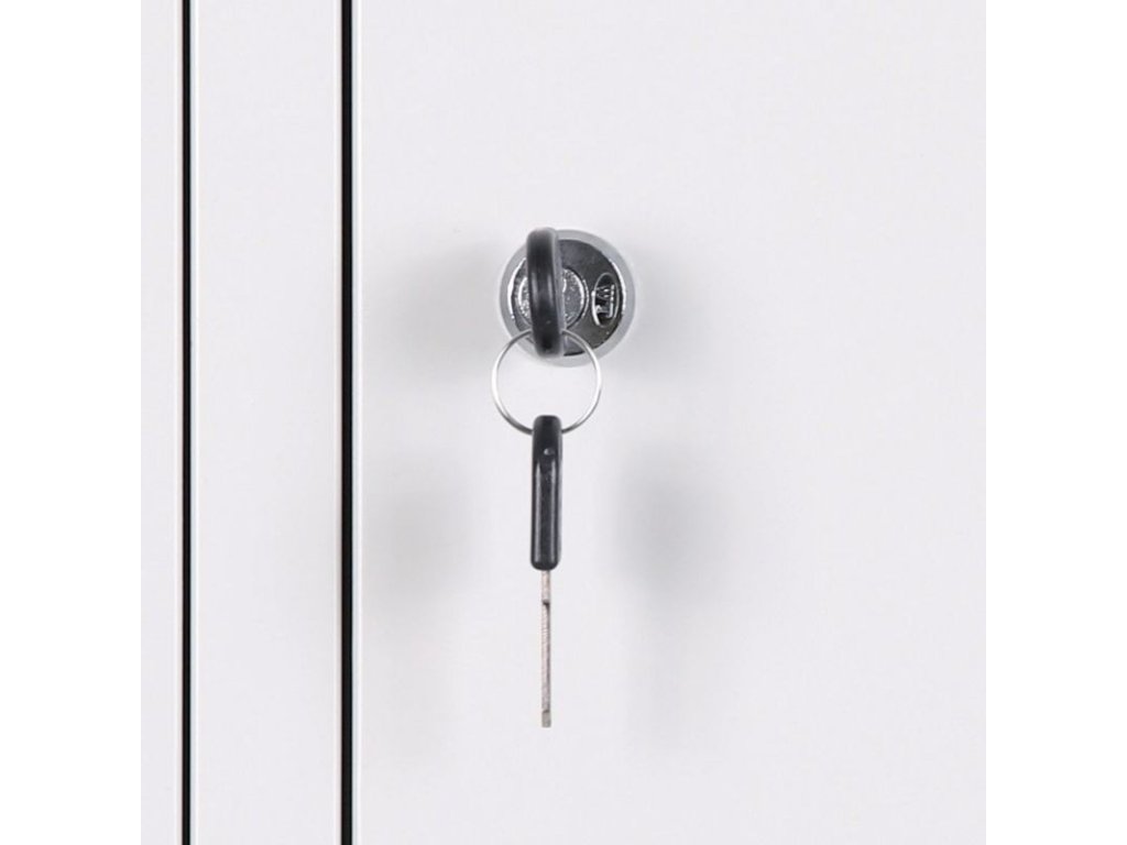 Dveře snadno uzamknete pomocí cylindrického zámku na klíč. Standardně jej dodáváme se 2 klíči v balení. Tento typ zámku je běžnou volbou pro individuálně přidělené skříňky.