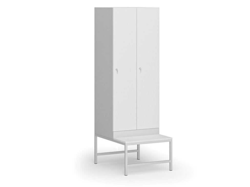 Šatní skříňka S1 s lavičkou, 2 oddíly, 1875 x 600 x 500/800 mm, cylindrický zámek, laminované dveře, bílá