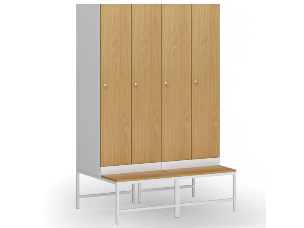 Šatní skříňka S1 s lavičkou, 2 oddíly, 1875 x 600 x 500/800 mm, demont, cylindrický zámek, laminované dveře, buk