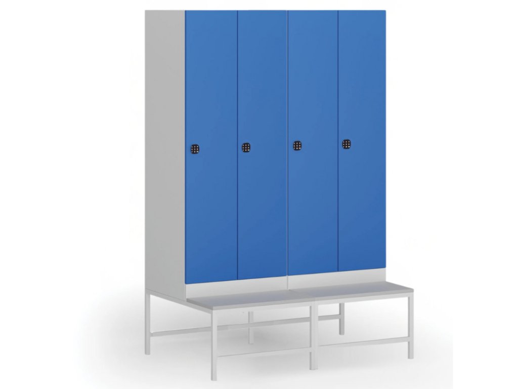 Kombinace lavičky vysoké 375 mm a soklu s výškou 100 mm pevně spojeného s korpusem skříňky kombinuje tepelnou ochranu i pohodlné sezení. Sokl zlepšuje tepelnou izolaci od země, brání usazování prachu a vlhkosti, lavička zajišťuje pohodlí při převlékání přímo u skříňky.