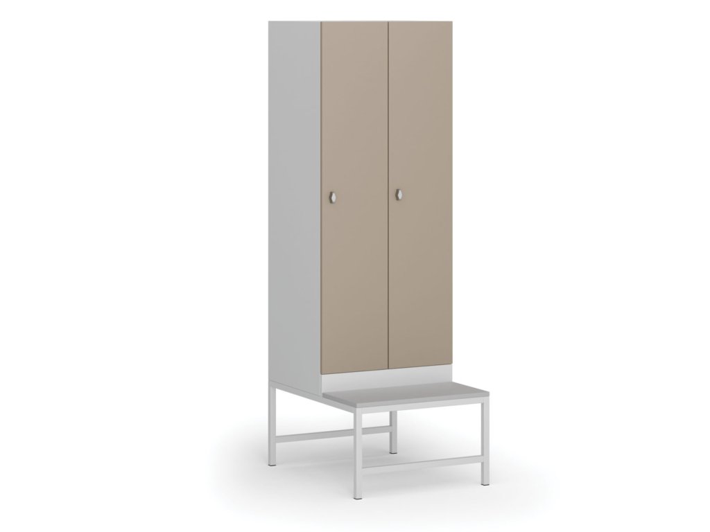 Šatní skříňka S1 s lavičkou, 2 oddíly, 1875 x 600 x 500/800 mm, otočný zámek, béžové dveře