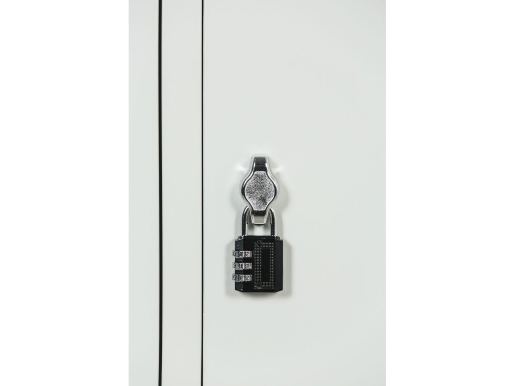 Dveře snadno uzamknete pomocí otočného zámku, do kterého lze umístit běžný visací zámek (kladku). Ideální řešení do prostředí s častým střídáním osob, které nevyžaduje správu klíčů. Každý uživatel skříňku uzamkne svým vlastním zámkem.