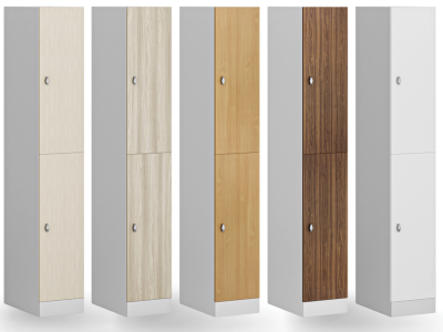 Konstrukce šatní skříňky je lakovaná kvalitním práškovým lakem vždy v odstínu RAL 7035 (šedá). Lak vytváří odolnou, stálobarevnou ochranu proti korozi, odření a usnadňuje údržbu. Standardizovaná barva RAL zajistí, že při opakovaných nákupech nakoupíte vždy stejný odstín. Dveře z laminované dřevotřísky lze vybírat v oblíbených dekorech dřeva i moderních barvách pro snadné sladění s interiérem.