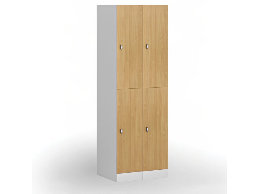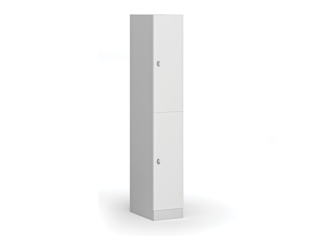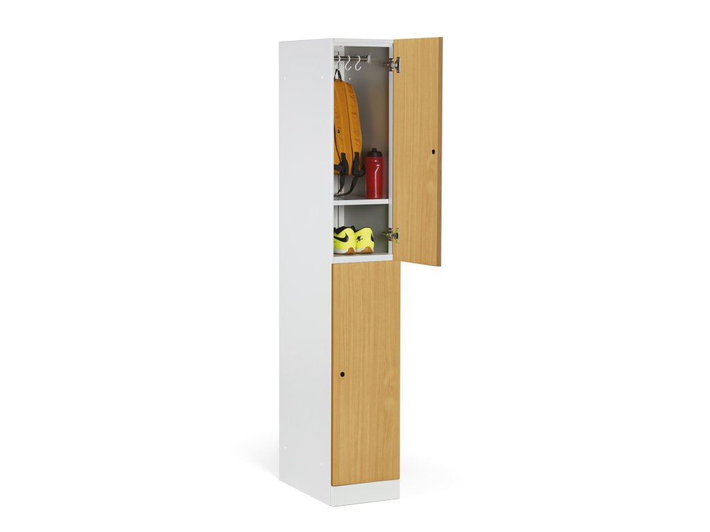 Skříňku s šířkou 300 mm tvoří 2 uzamykatelné boxy. Každý box poskytuje dostatek místa pro uložení osobních věcí, batohů či tašek. Toto úsporné a přitom bezpečné, uzamykatelné řešení je ideální všude tam, kde je potřeba šetřit místem a zároveň není nutné zavěšovat delší oděvy.