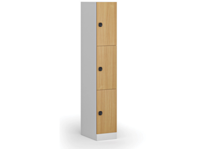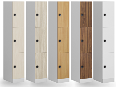 Skříňku s šířkou 300 mm tvoří 3 uzamykatelné boxy. Každý box poskytuje dostatek místa pro uložení osobních věcí, batohů či tašek. Toto úsporné a přitom bezpečné, uzamykatelné řešení je ideální všude tam, kde je potřeba šetřit místem a zároveň není nutné zavěšovat delší oděvy.