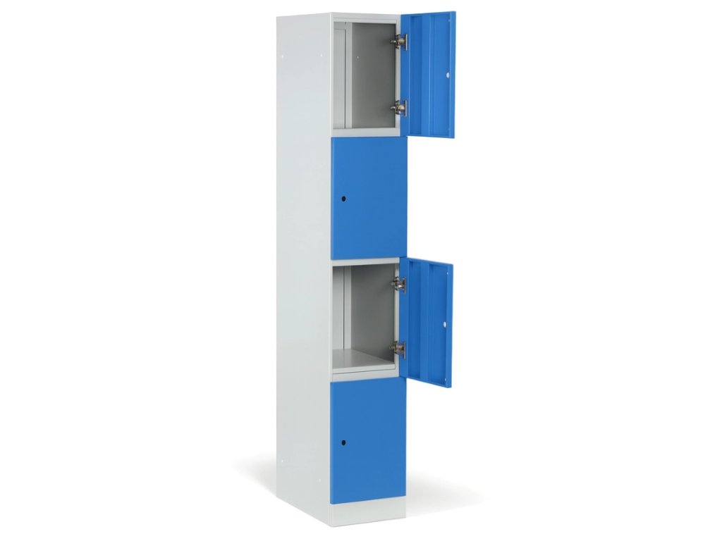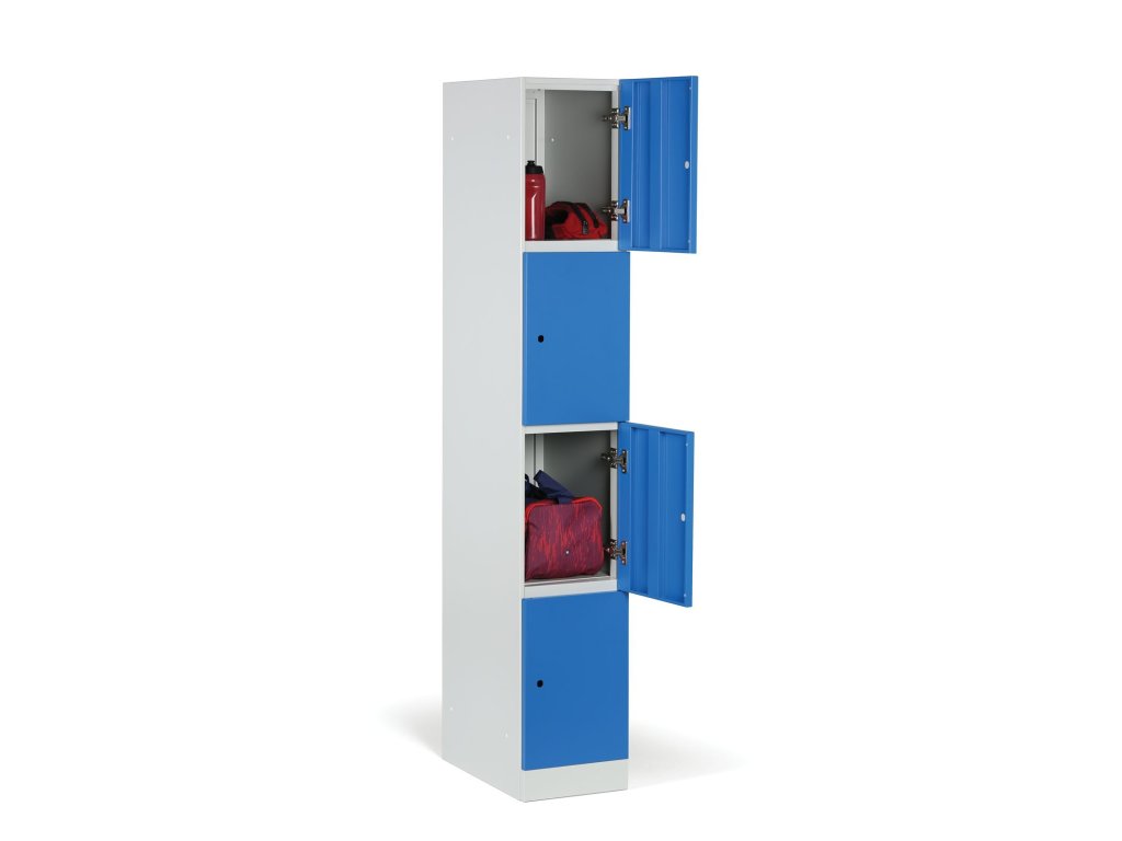 Skříňku s šířkou 300 mm tvoří 4 uzamykatelné boxy. Každý box poskytuje dostatek místa pro uložení osobních věcí, batohů či tašek. Toto úsporné a přitom bezpečné, uzamykatelné řešení je ideální všude tam, kde je potřeba šetřit místem a zároveň není nutné zavěšovat delší oděvy.