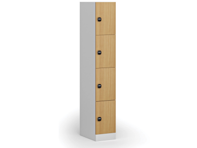 Šatní skříňka s úložnými boxy, 4 boxy, 1850 x 300 x 500 mm, demont, RFID zámek, laminované dveře, bříza