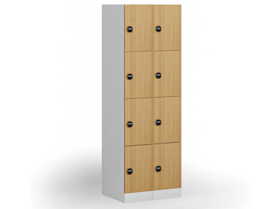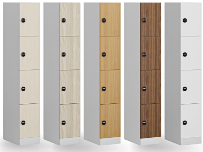 Skříňku s šířkou 300 mm tvoří 4 uzamykatelné boxy. Každý box poskytuje dostatek místa pro uložení osobních věcí, batohů či tašek. Toto úsporné a přitom bezpečné, uzamykatelné řešení je ideální všude tam, kde je potřeba šetřit místem a zároveň není nutné zavěšovat delší oděvy.