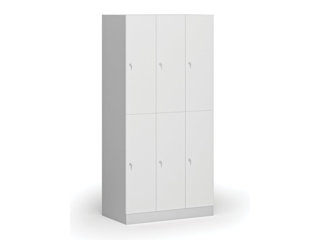 Skříňku s šířkou 300 mm tvoří 6 uzamykatelných boxů. Každý box poskytuje dostatek místa pro uložení osobních věcí, batohů či tašek. Toto úsporné a přitom bezpečné, uzamykatelné řešení je ideální všude tam, kde je potřeba šetřit místem a zároveň není nutné zavěšovat delší oděvy.