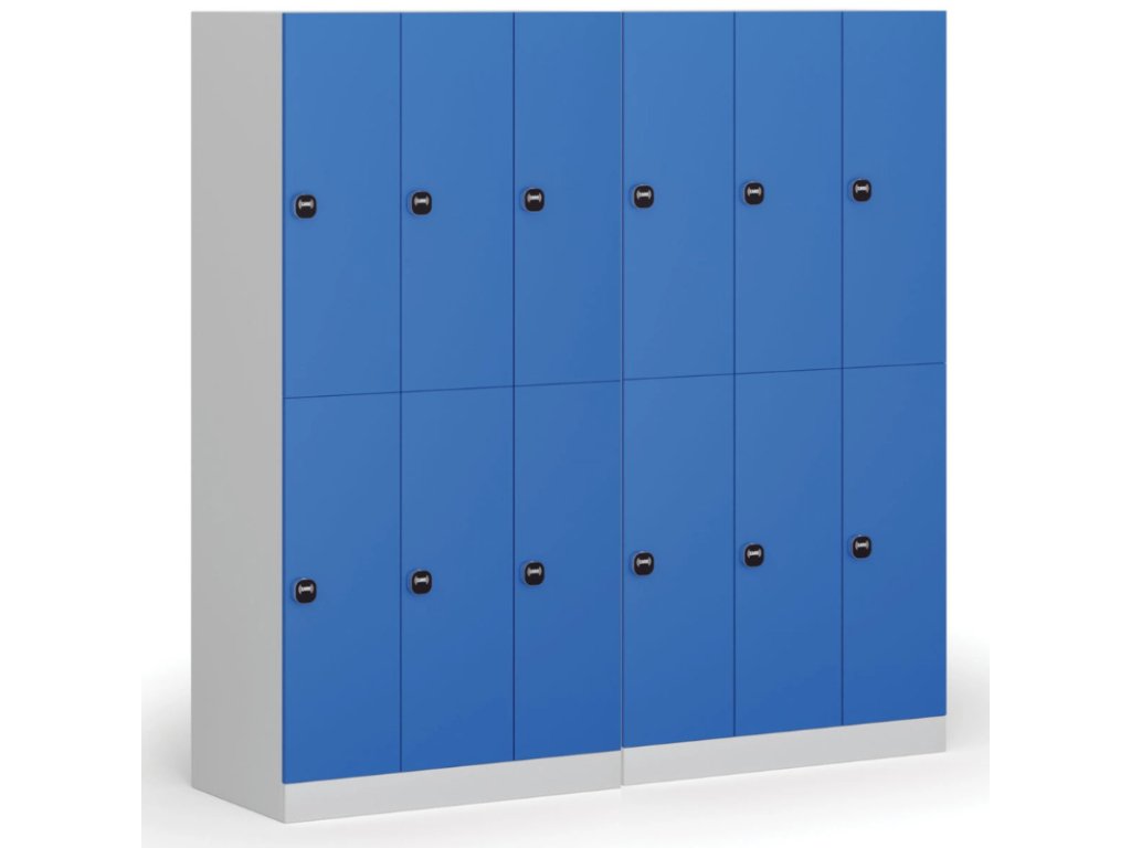 Skříňku s šířkou 300 mm tvoří 6 uzamykatelných boxů. Každý box poskytuje dostatek místa pro uložení osobních věcí, batohů či tašek. Toto úsporné a přitom bezpečné, uzamykatelné řešení je ideální všude tam, kde je potřeba šetřit místem a zároveň není nutné zavěšovat delší oděvy.