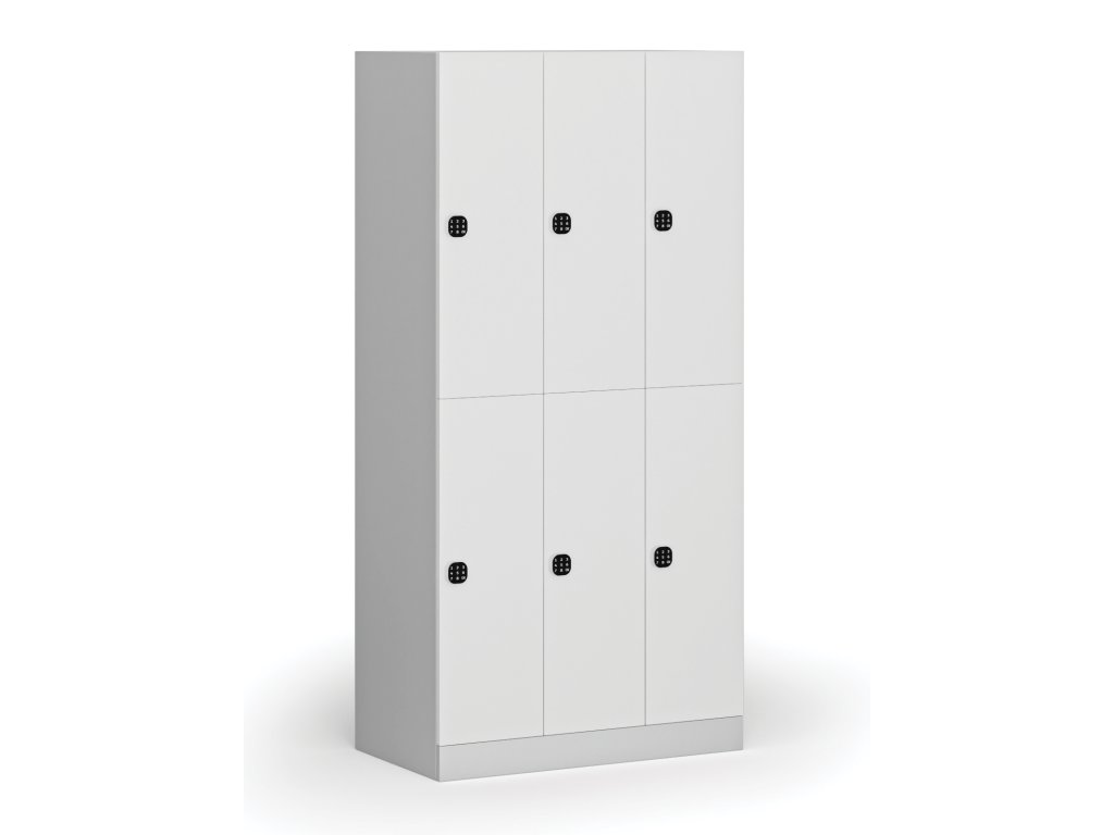 Skříňku s šířkou 300 mm tvoří 6 uzamykatelných boxů. Každý box poskytuje dostatek místa pro uložení osobních věcí, batohů či tašek. Toto úsporné a přitom bezpečné, uzamykatelné řešení je ideální všude tam, kde je potřeba šetřit místem a zároveň není nutné zavěšovat delší oděvy.