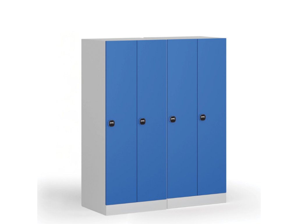 Snížená šatní skříňka S1, 2 oddíly, 1500 x 600 x 500 mm, demont, RFID zámek, modré dveře