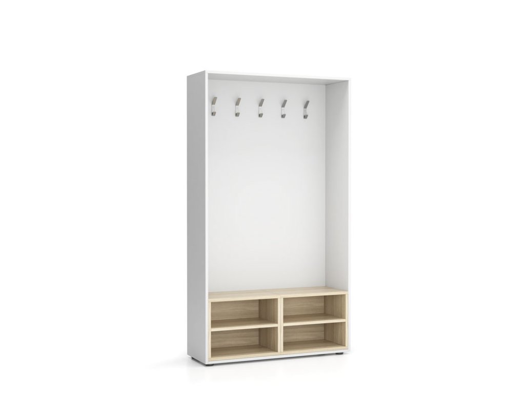 Šatní stěna BORDER s botníkem, 5 háčků, bílá/dub přírodní