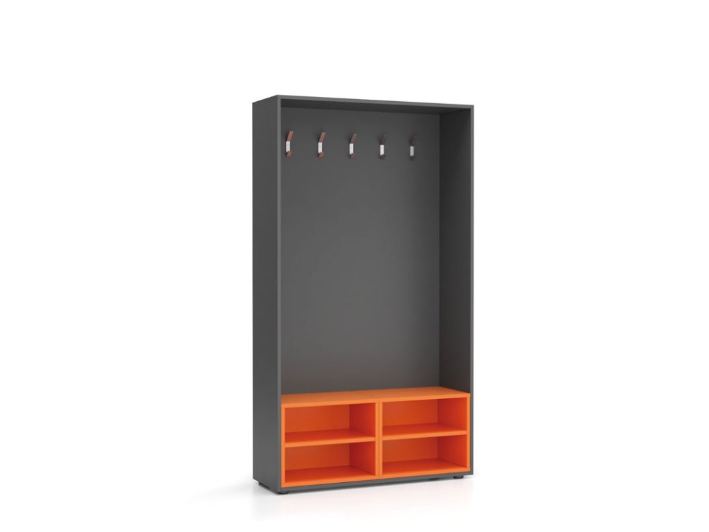 Šatní stěna BORDER s botníkem, 5 háčků, grafit/oranžová