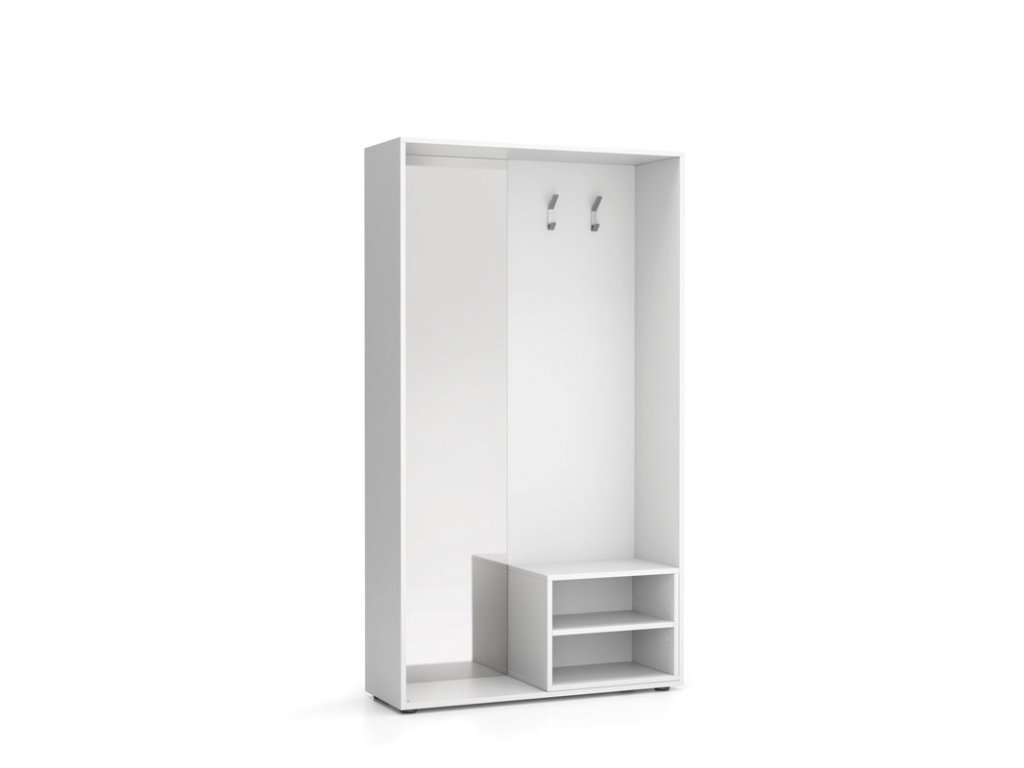 Šatní stěna BORDER s botníkem a zrcadlem, 2 háčky, bílá/bílá