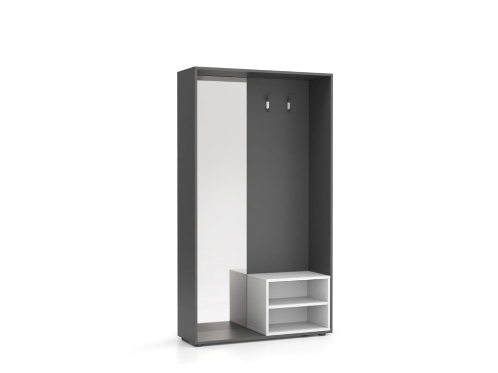 Šatní stěna BORDER s botníkem a zrcadlem, 2 háčky, grafit/bílá