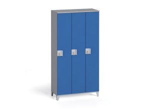Dřevěná šatní skříňka s úložnými boxy, 8 boxů, demont, mechanický kódový zámek, šedá/bílá – Skladem13 412 Kč