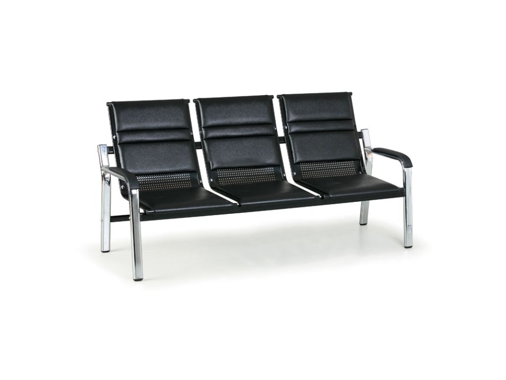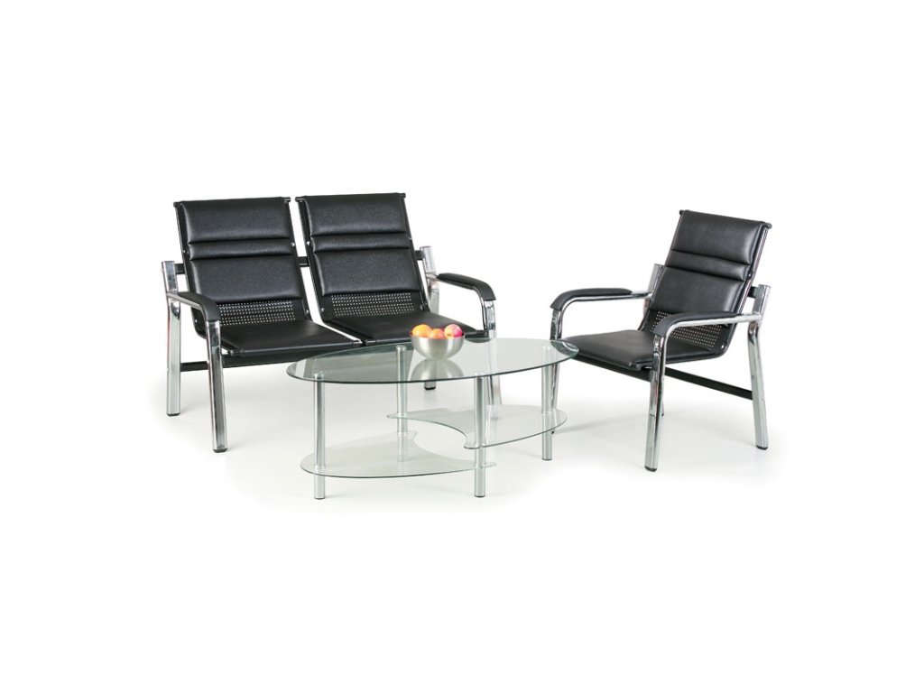 Kožená sedací souprava s kovovou konstrukcí SOLID II, 3 místa, černá