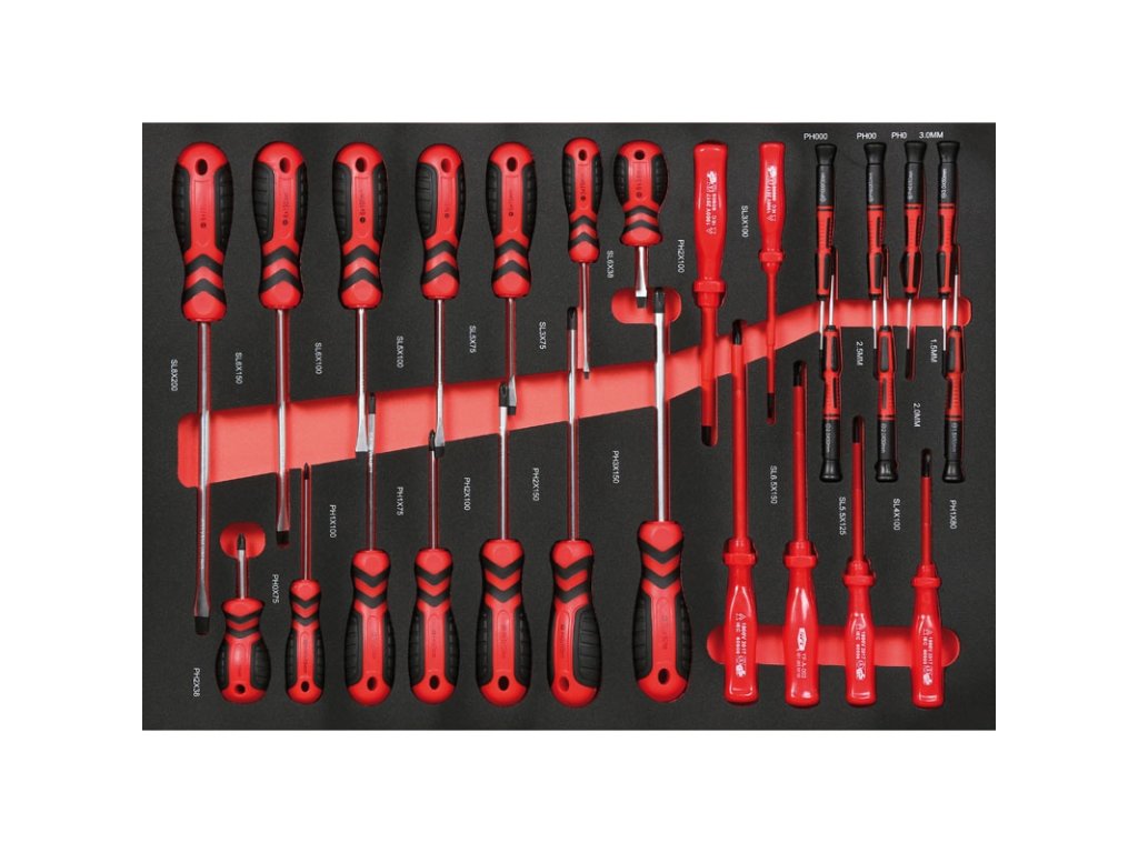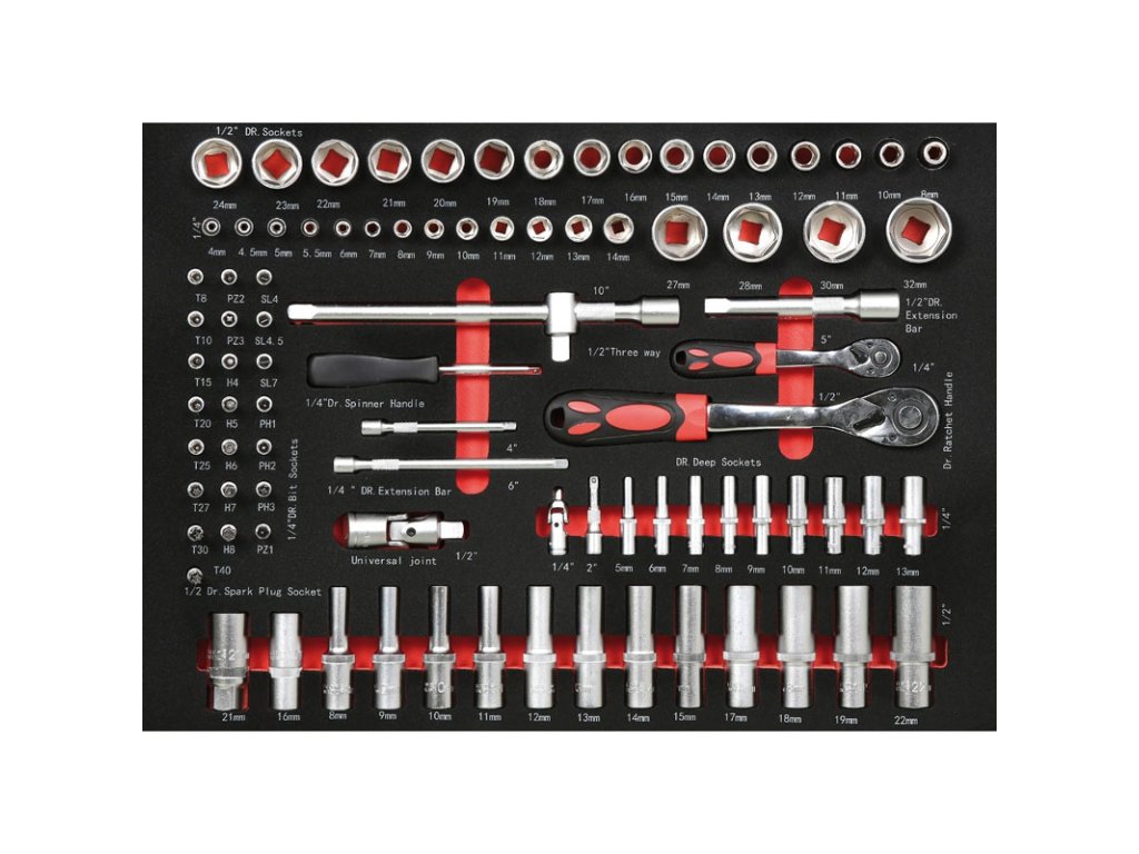 - vozík je vybaven sadou nářadí z kvalitní chrom vanadové oceli, která propůjčuje každému dílu vysokou pevnost
