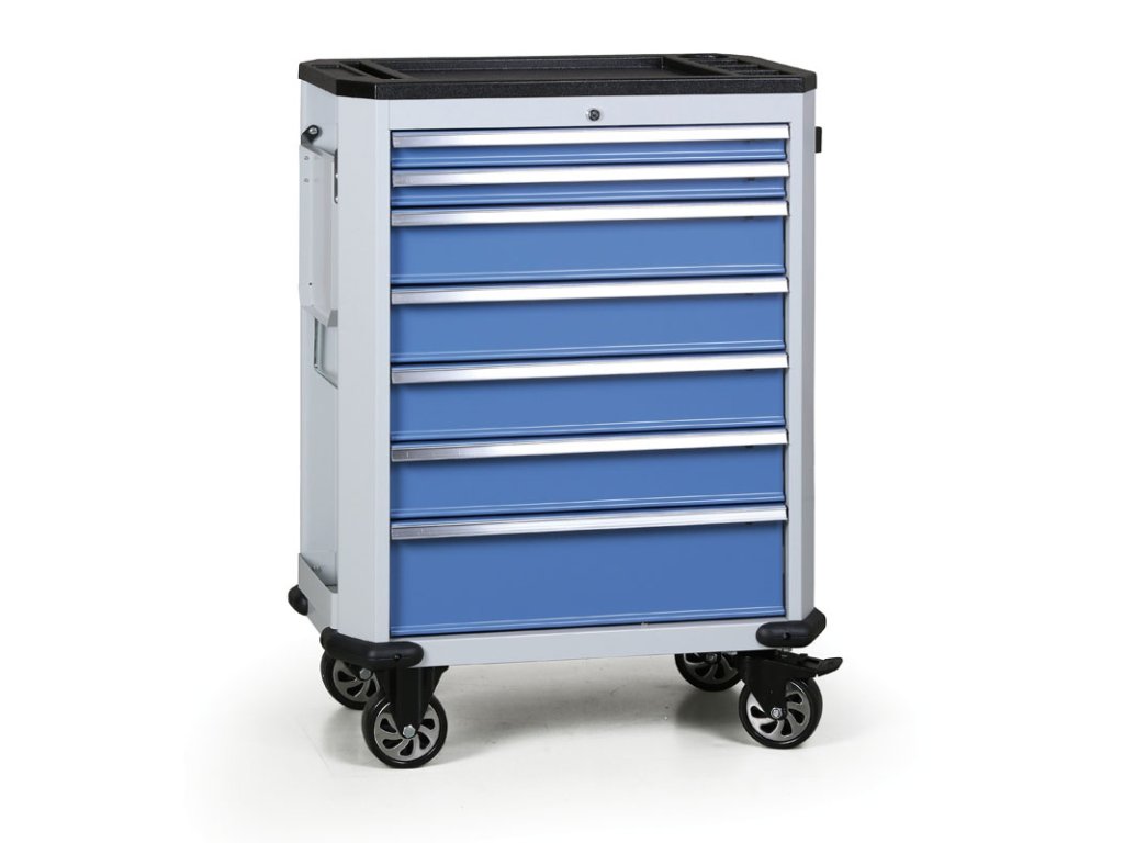 Pojízdný dílenský vozík na nářadí EXPERT, VČETNĚ NÁŘADÍ, 7 zásuvek, modrá