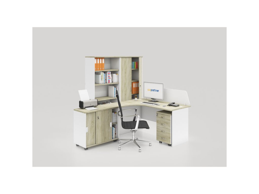 Základem každé sestavy kancelářského nábytku je stůl, který může být rohový nebo ve formě dvou psacích stolů spojených spojovacím stolkem. Stůl je doplněn o kontejner na kolečkách a paravan, jež vnese do Vaší kanceláře potřebný kousek soukromí. Součástí sestav je sestava skříní, která zajistí dostatek úložného prostoru pro úschovu kancelářských potřeb. (neplatí pro sestavu typu D).