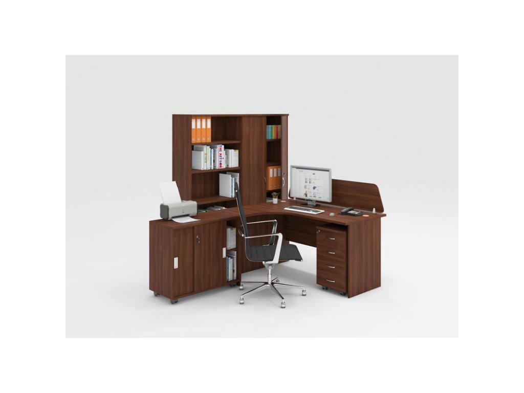 Základem každé sestavy kancelářského nábytku je stůl, který může být rohový nebo ve formě dvou psacích stolů spojených spojovacím stolkem. Stůl je doplněn o kontejner na kolečkách a paravan, jež vnese do Vaší kanceláře potřebný kousek soukromí. Součástí sestav je sestava skříní, která zajistí dostatek úložného prostoru pro úschovu kancelářských potřeb. (neplatí pro sestavu typu D).