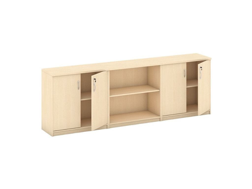 Menší kancelářské sestavy skříní 800 x 400 x 800 a sestavy 800 x 400 x 1200 jsou složeny buď ze zasouvacích či 2-dveřových skříní vždy v kombinaci se skříní otevřenou. Zasouvací skříně navíc můžete umístit i do těsných kancelářských prostor. Dohromady můžete u menších i velkých sestav skříní vybírat až z 10 kombinací.