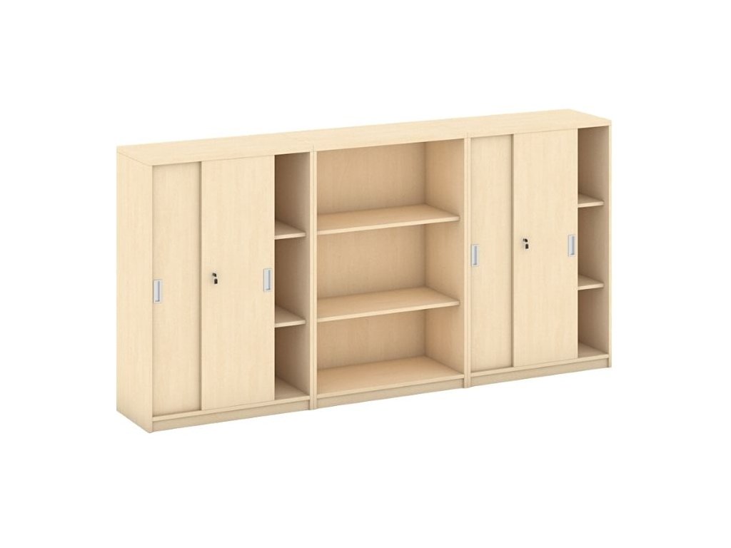 Menší kancelářské sestavy skříní 800 x 400 x 800 a sestavy 800 x 400 x 1200 jsou složeny buď ze zasouvacích či 2-dveřových skříní vždy v kombinaci se skříní otevřenou. Zasouvací skříně navíc můžete umístit i do těsných kancelářských prostor. Dohromady můžete u menších i velkých sestav skříní vybírat až z 10 kombinací.