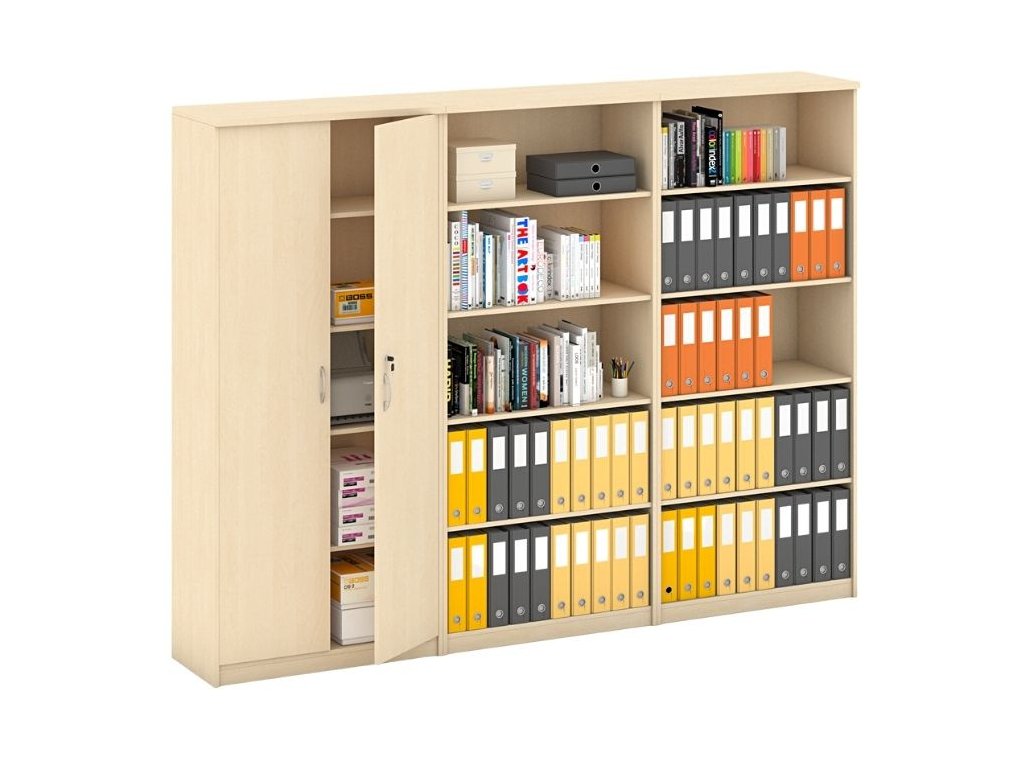 Větší sestavy skříní 800 x 400 x 1800 jsou složeny buď ze zasouvacích či 2-dveřových skříní vždy v kombinaci se skříní otevřenou. Oproti menším kancelářským sestavám přidávají i kombinaci policové 2-dveřové či policové zasouvací. Dohromady můžete u menších i velkých sestav skříní vybírat až z 10 kombinací.