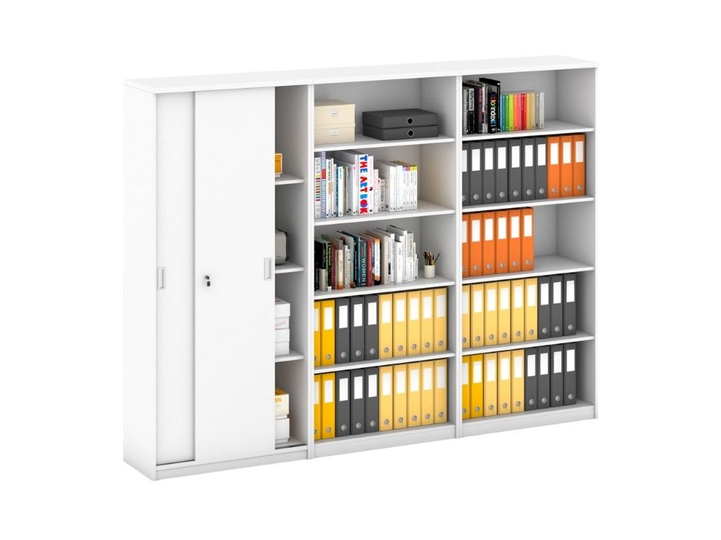 Větší sestavy skříní 800 x 400 x 1800 jsou složeny buď ze zasouvacích či 2-dveřových skříní vždy v kombinaci se skříní otevřenou. Oproti menším kancelářským sestavám přidávají i kombinaci policové 2-dveřové či policové zasouvací. Dohromady můžete u menších i velkých sestav skříní vybírat až z 10 kombinací.