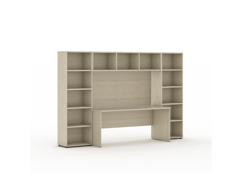 Sestavy knihoven INTEGRO se stolem, nižší, 2950 x 700/400 x 1923 mm, dub přírodní