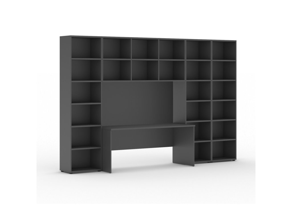 Sestavy knihoven INTEGRO se stolem, vyšší/širší, 3550 x 700/400 x 2300 mm, grafit