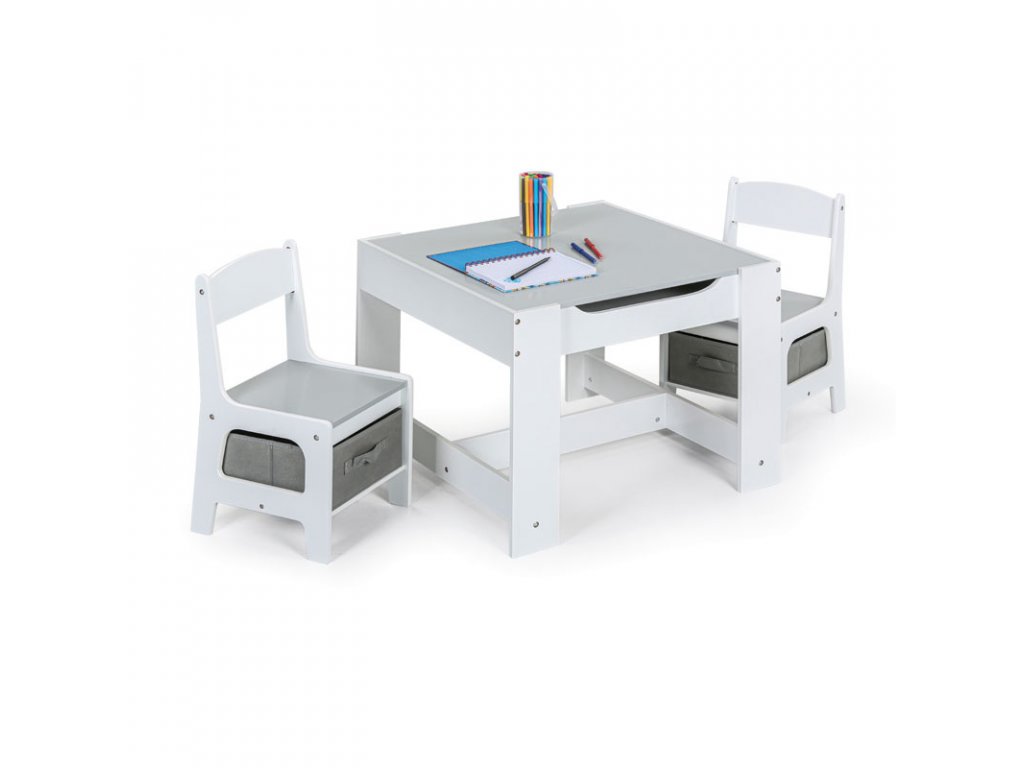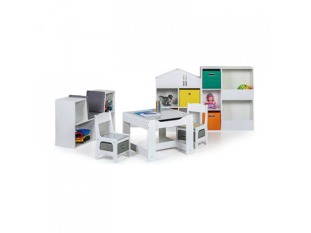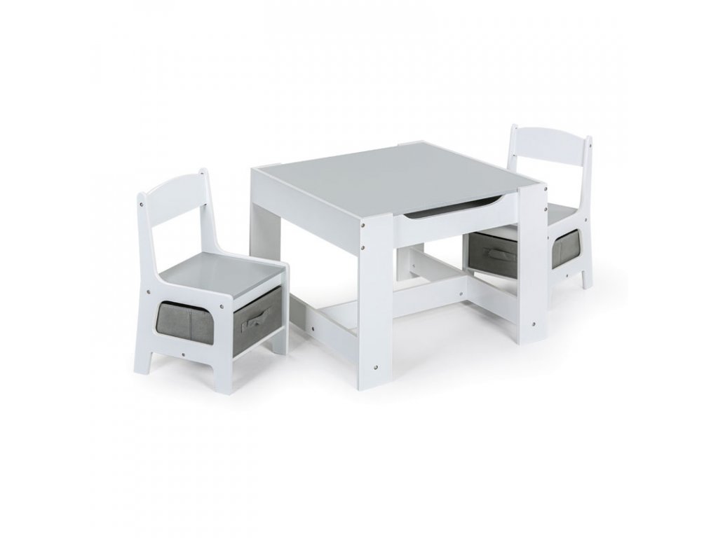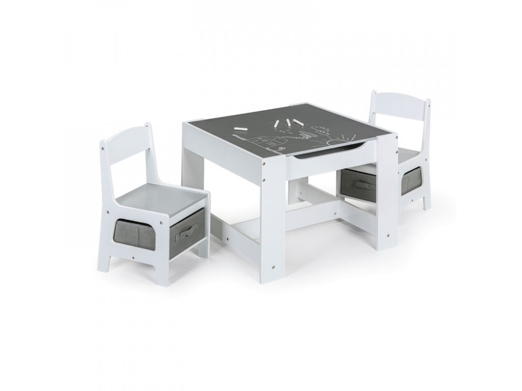 Sestava dvou dětských židliček a stolečku Multi v kombinaci bílé a šedé barvy poskytne vašim dětem dostatek prostoru i pohodlí při hraní, malování a dalších tvořivých činnostech. Spolehnout se můžete na pečlivé zpracování se zaoblenými rohy židlí, které chrání děti před poraněním a konstrukci židlí, která slibuje vysokou stabilitu a minimalizuje riziko pádu.