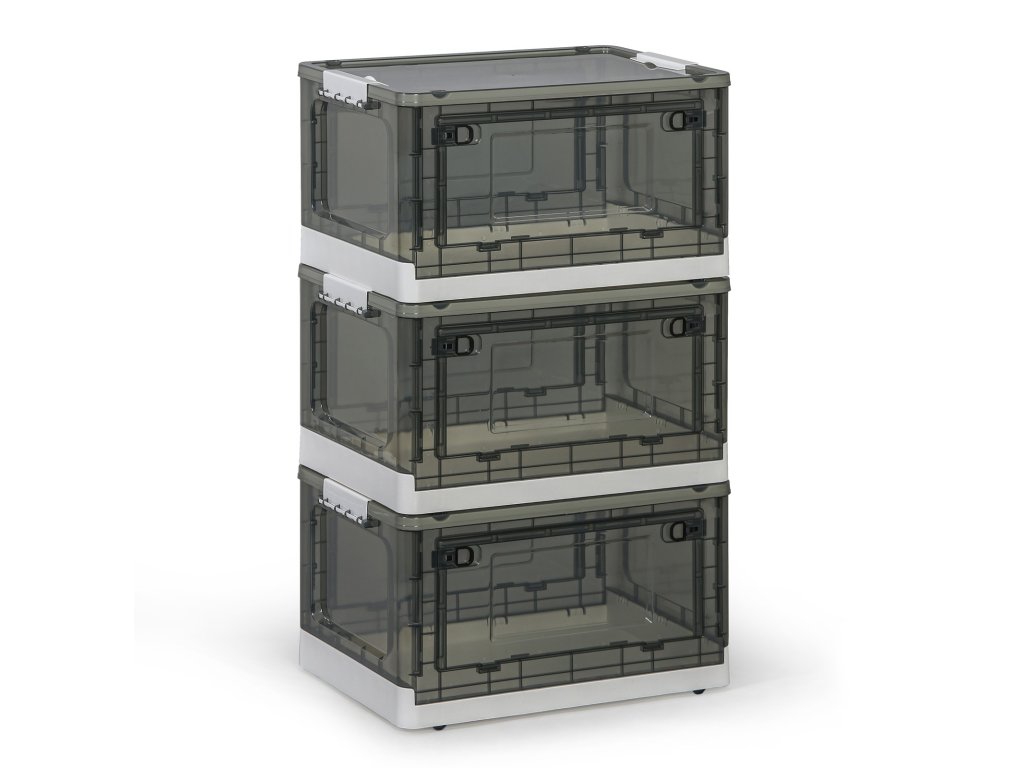 Středně velký plastový box s objemem 43 litrů je skvělým pomocníkem pro skladování v domácnosti i kanceláři. Jeho skládací konstrukce umožňuje jednoduché složení a úsporu místa, když ho zrovna nepotřebujete. Vhodný pro uložení oblečení, nářadí nebo dokumentů.