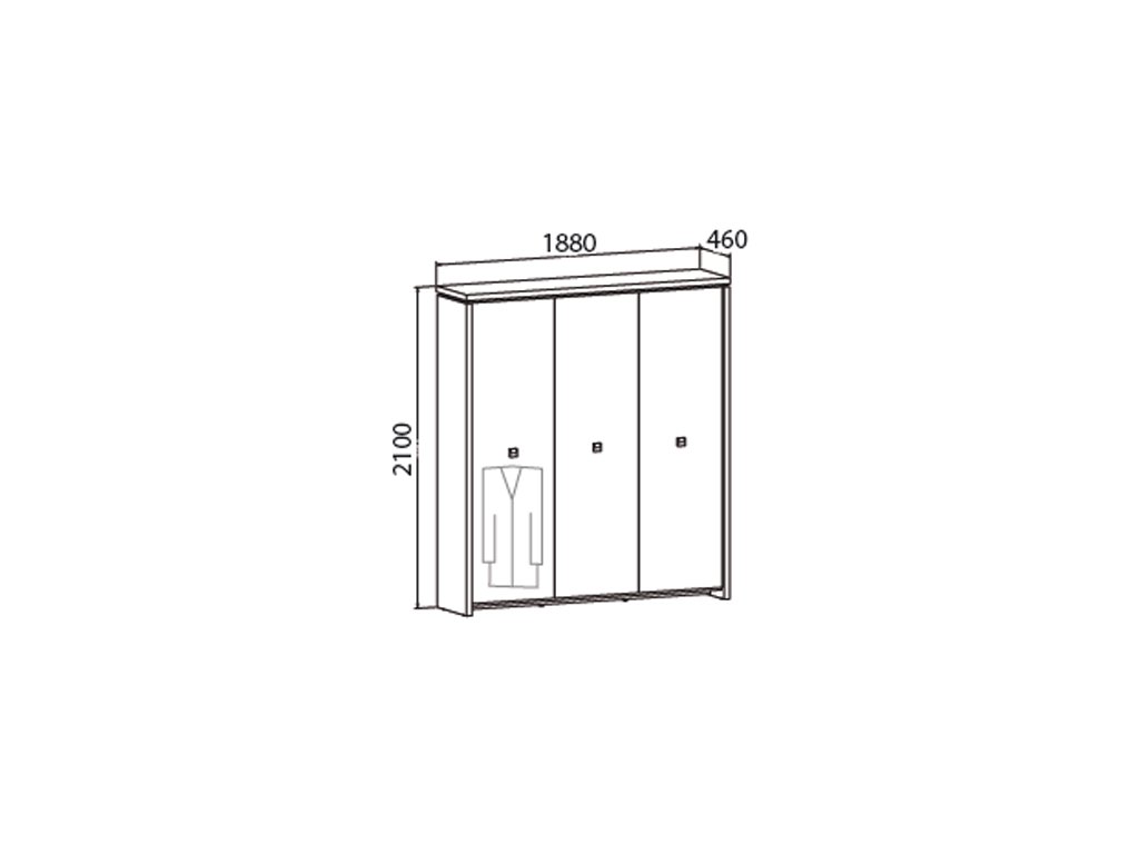 Třídveřová skříň s věšákem ASSIST, 1880 x 460 x 2100 mm, dub antracit