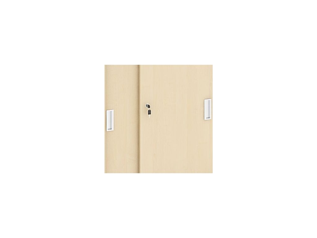 Skříň je opatřena zasouvacími dveřmi, jejichž nesmírnou výhodou je umístění i do menšího těsného interiéru s omezenými zónami pohybu. Součástí dveří je centrální zamykání se dvěmi klíči. Pohodlně tedy uzamknete všechny své cenné dokumenty. Estetickou stránku dveří doplňují kvalitní nadčasová madla z leštěného hliníku.