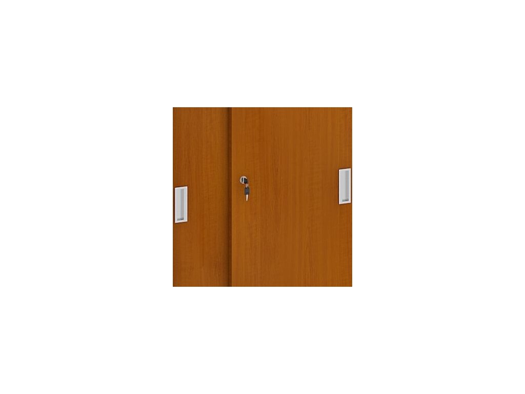 Skříň je opatřena zasouvacími dveřmi, jejichž nesmírnou výhodou je umístění i do menšího těsného interiéru s omezenými zónami pohybu. Součástí dveří je centrální zamykání se dvěmi klíči. Pohodlně tedy uzamknete všechny své cenné dokumenty. Estetickou stránku dveří doplňují kvalitní nadčasová madla z leštěného hliníku.