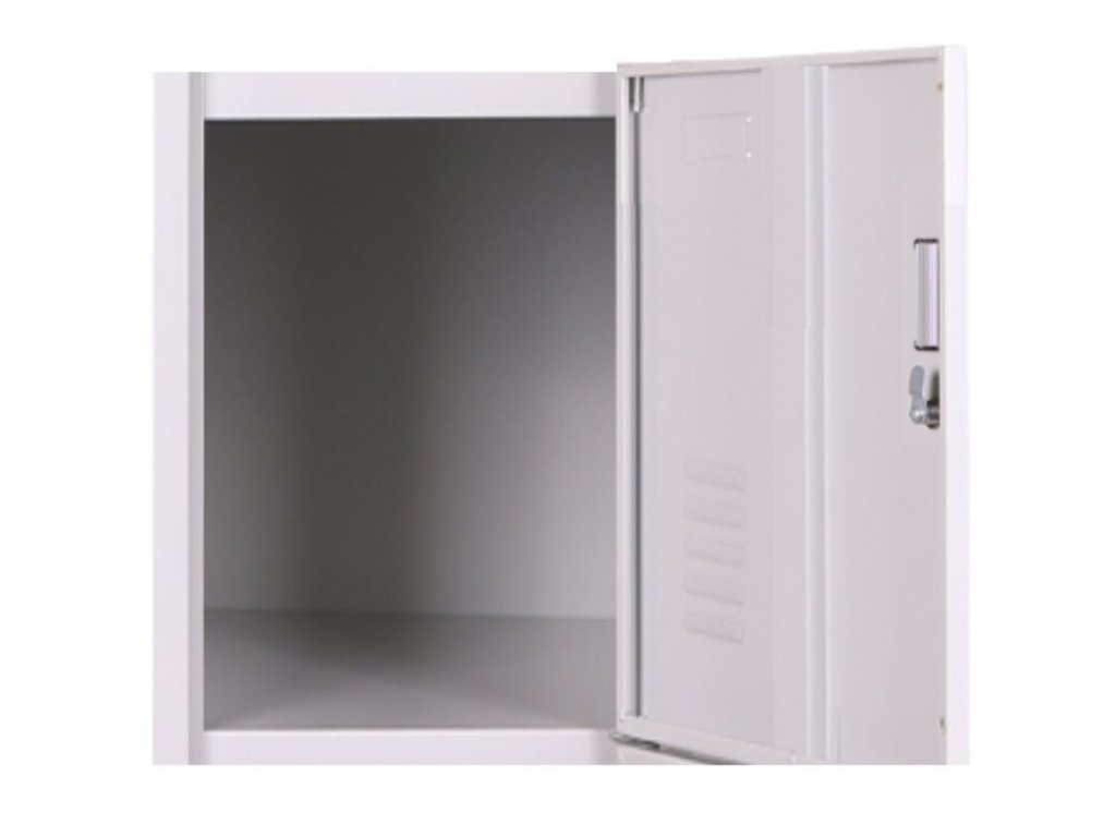 Skříňku s šířkou 380 mm tvoří 4 uzamykatelné boxy. Každý box poskytuje dostatek místa pro uložení osobních věcí, batohů či tašek. Toto úsporné a přitom bezpečné, uzamykatelné řešení je ideální všude tam, kde je potřeba šetřit místem a zároveň není nutné zavěšovat delší oděvy.