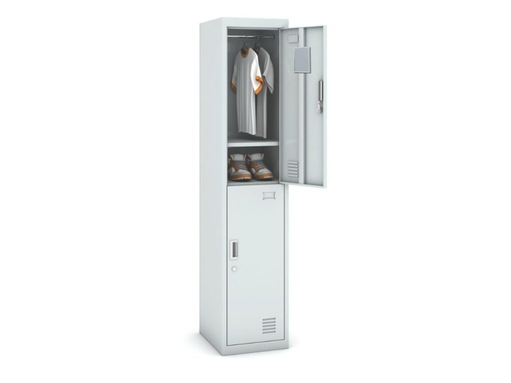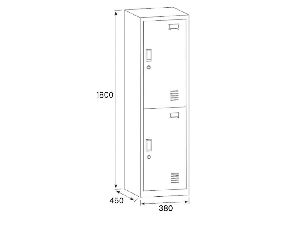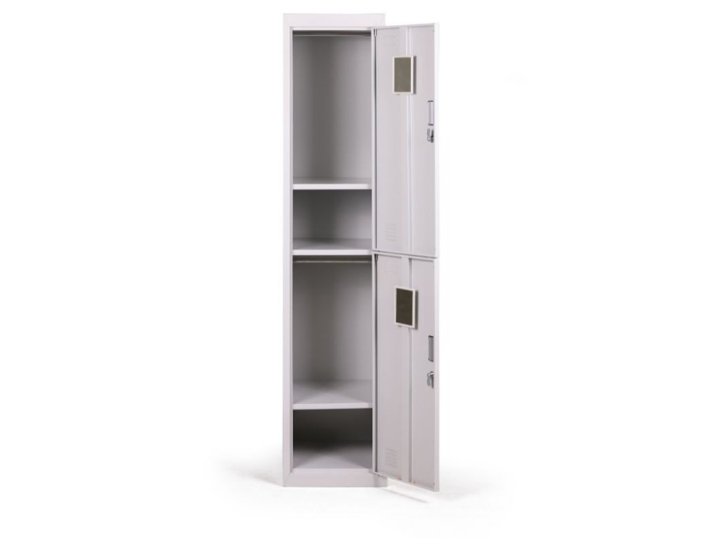 Skříňku s šířkou 380 mm tvoří 2 uzamykatelné boxy. Každý box poskytuje dostatek místa pro uložení osobních věcí, batohů či tašek. Toto úsporné a přitom bezpečné, uzamykatelné řešení je ideální všude tam, kde je potřeba šetřit místem a zároveň není nutné zavěšovat delší oděvy.