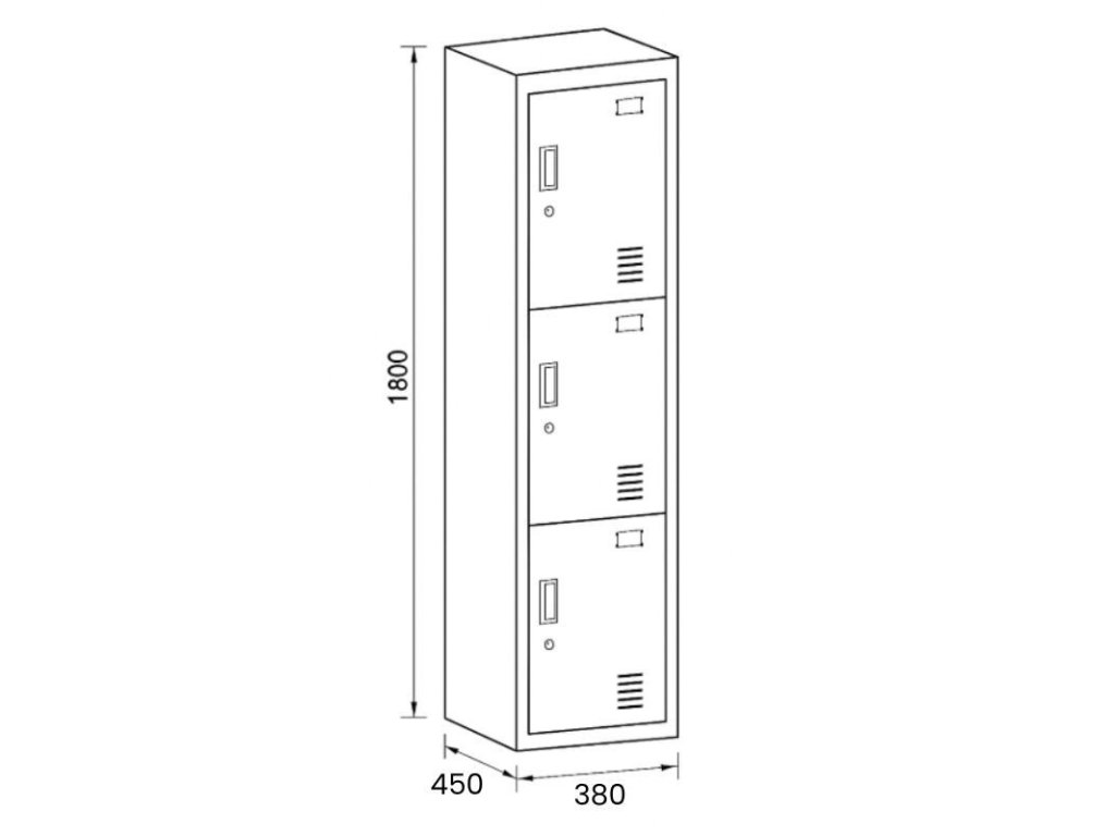 Skříňku s šířkou 380 mm tvoří 3 uzamykatelné boxy. Každý box poskytuje dostatek místa pro uložení osobních věcí, batohů či tašek. Toto úsporné a přitom bezpečné, uzamykatelné řešení je ideální všude tam, kde je potřeba šetřit místem a zároveň není nutné zavěšovat delší oděvy.