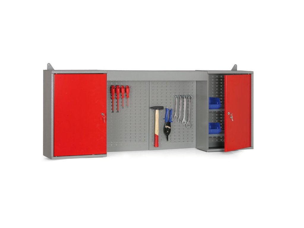 Kombinovaná závěsná skříňka na zeď HOBBY I, 600 x 1600 x 200 mm, 2 dveře + perforovaný panel