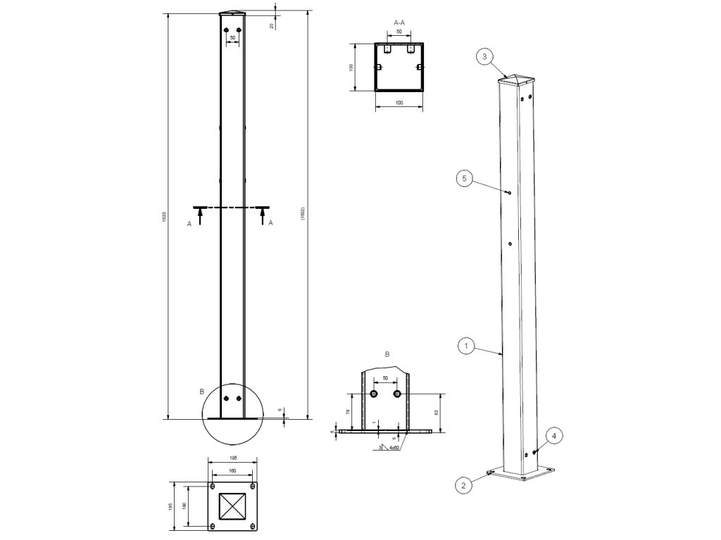 Sloupek je čtvercového půdorysu. Díky tomu plot získá vysokou stabilitu a pevnost. Nerezová čepička je součástí balení.