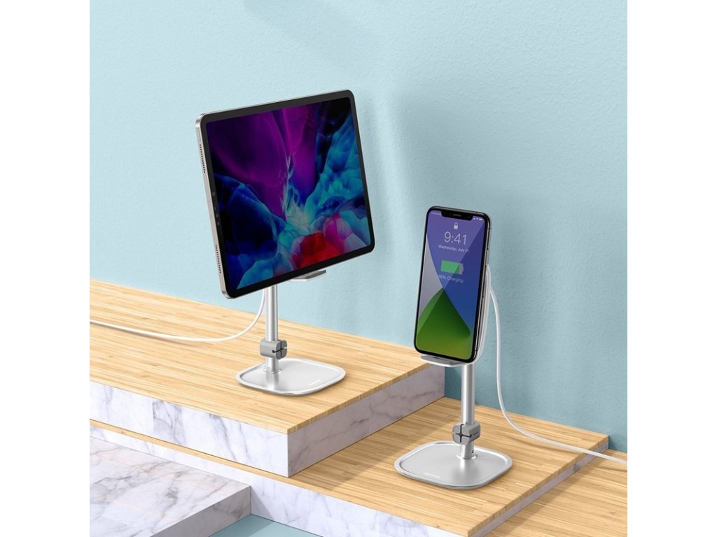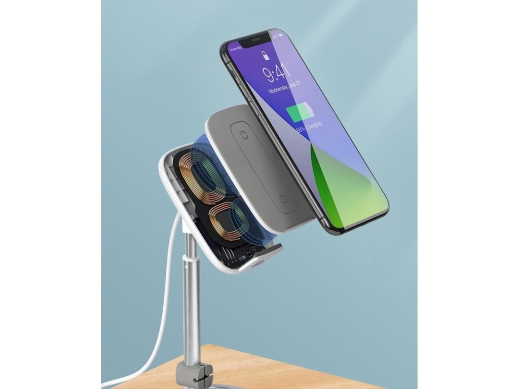 Univerzální stojan na mobil i tablet Vás potěší svou nastavitelností, čistým vzhledem i rychlým bezdrátovým nabíjením. Univerzální stojánek je vhodný pro všechna zařízení od mobilu po tablet. Zaleží tak pouze na Vás, jak jej využijete. Stojánek disponuje rychlým bezdrátovým nabíjením (quick charge 3.0) s maximálním výstupem 15 W. Stojan podporuje nabíjení i pomocí kabelu.