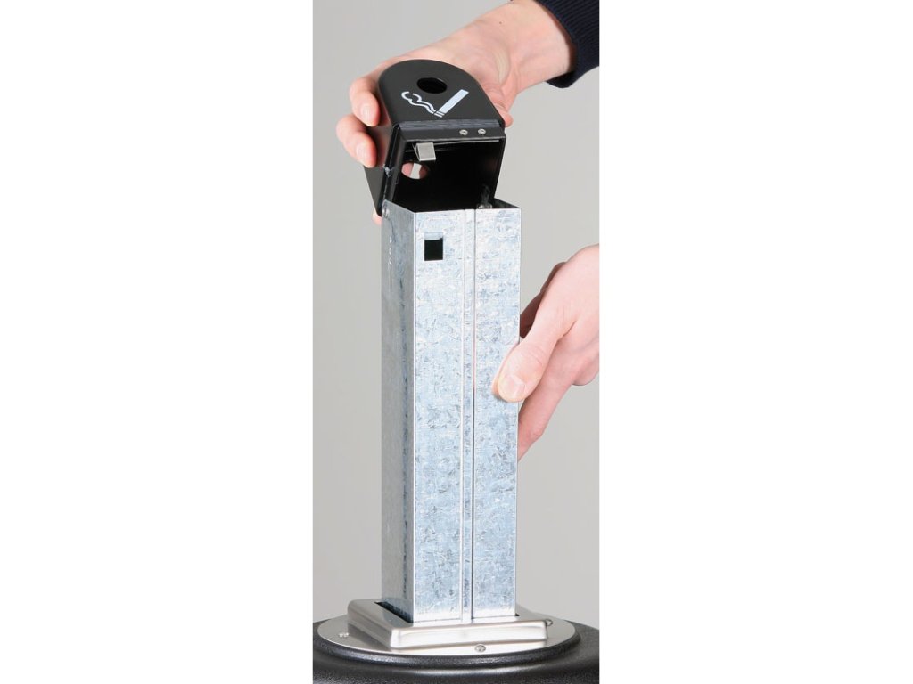 - nádobu na nedopálky lze uchytit lankem ke stojanu proti odcizení (lze dokoupit jako bezpečnostní sadu)